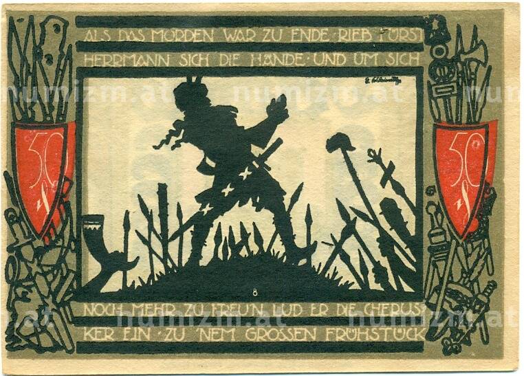 Интернет магазин «Нумизмат» предлагает приобрести 50 пфеннигов 1921 года Германия — Детмольд (Нотгельд).
