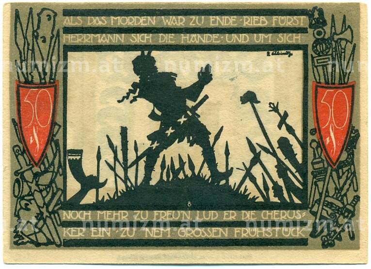 Интернет магазин «Нумизмат» предлагает приобрести 50 пфеннигов 1921 года Германия — Детмольд (Нотгельд).