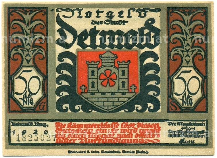 Купить 50 пфеннигов 1921 года Германия — Детмольд (Нотгельд) по привлекательной цене можно в нашем интернет-магазине — Вам достаточно оформить заказ на сайте. Все монеты, представленные в каталоге, находятся в наличии на нашем складе.