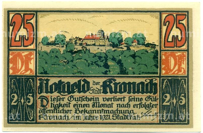 Купить 25 пфеннигов 1921 года Германия — Кронах (Нотгельд) по привлекательной цене можно в нашем интернет-магазине — Вам достаточно оформить заказ на сайте. Все монеты, представленные в каталоге, находятся в наличии на нашем складе.