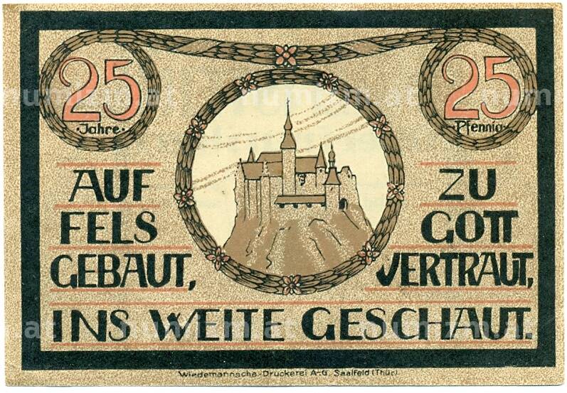 Интернет магазин «Нумизмат» предлагает приобрести 25 пфеннигов 1921 года Германия — Лауэнштайн (Нотгельд).