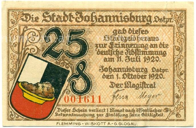 20.01.2025Интернет магазин «Нумизмат» предлагает приобрести 25 пфеннигов 1920 года Германия — Йоханнесбург (Нотгельд).
