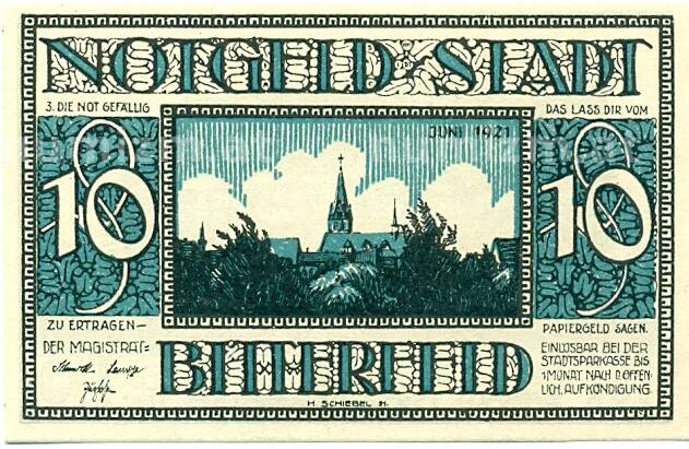 Банкнота 10 пфеннигов 1921 года Германия — Биттерфельд (Нотгельд) (Артикул: K10-12599): подробные характеристики, качественные фотографии в высоком разрешении, низкая цена.
