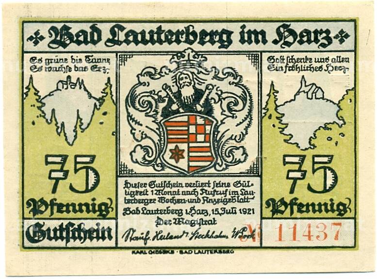 Купить 75 пфеннигов 1921 года Германия — Бад-Лаутерберг (Нотгельд) по привлекательной цене можно в нашем интернет-магазине — Вам достаточно оформить заказ на сайте. Все монеты, представленные в каталоге, находятся в наличии на нашем складе.