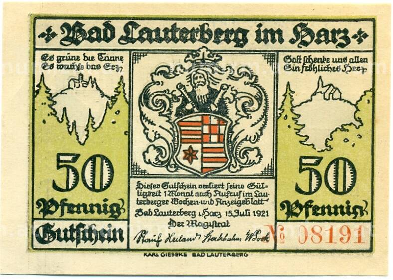 Купить 50 пфеннигов 1921 года Германия — Бад-Лаутерберг (Нотгельд) по привлекательной цене можно в нашем интернет-магазине — Вам достаточно оформить заказ на сайте. Все монеты, представленные в каталоге, находятся в наличии на нашем складе.