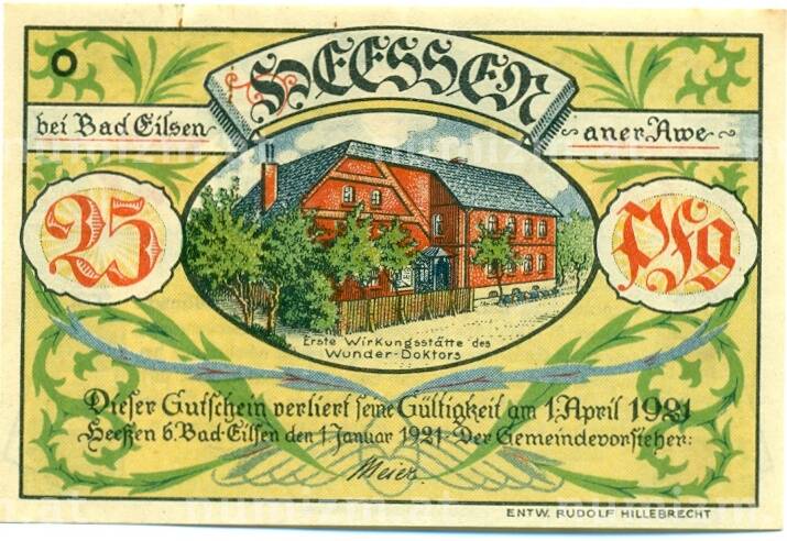 20.01.2025Интернет магазин «Нумизмат» предлагает приобрести 25 пфеннигов 1921 года Германия — Хесен (Нотгельд).