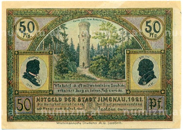 Интернет магазин «Нумизмат» предлагает приобрести 50 пфеннигов 1921 года Германия — Ильменау (Нотгельд).
