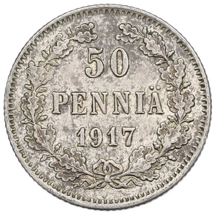 Монета 50 пенни 1917 года Русская Финляндия (Орел с коронами) [Артикул: K10-1265]