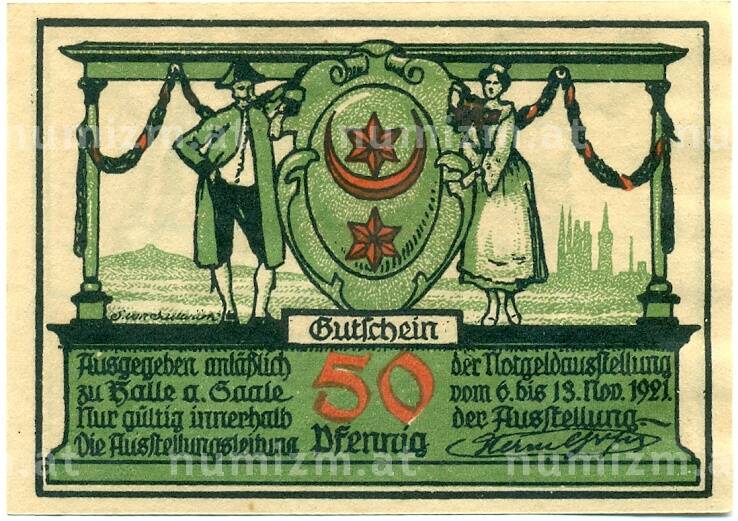 20.01.2025Интернет магазин «Нумизмат» предлагает приобрести 50 пфеннигов 1921 года Германия — Галле (Нотгельд).