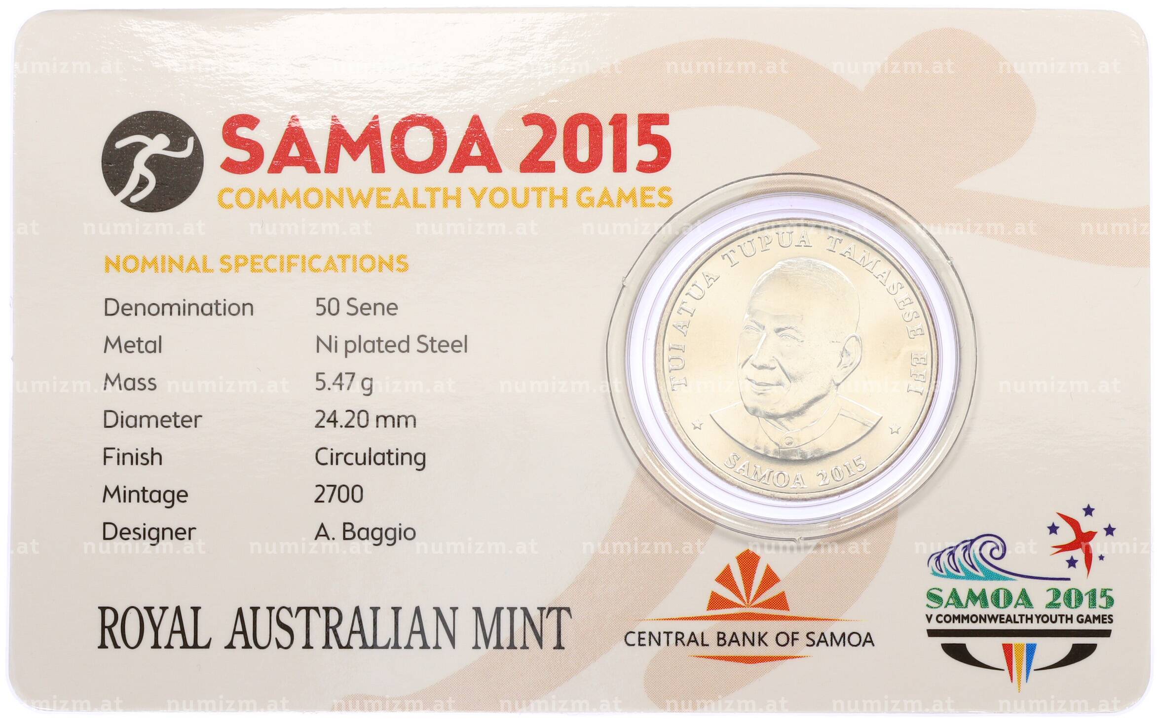 Купить 50 сене 2015 года Самоа «V Юношеские игры Содружества — Атлетика» (в блистере) по привлекательной цене можно в нашем интернет-магазине — Вам достаточно оформить заказ на сайте. Все монеты, представленные в каталоге, находятся в наличии на нашем складе.
