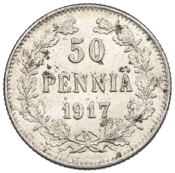 Монета 50 пенни 1917 года Русская Финляндия (Орел с коронами) (Артикул: K10-1267): подробные характеристики, качественные фотографии в высоком разрешении, низкая цена.