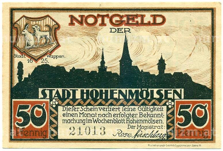 Купить 50 пфеннигов 1921 года Германия — Хоэнмельзен (Нотгельд) по привлекательной цене можно в нашем интернет-магазине — Вам достаточно оформить заказ на сайте. Все монеты, представленные в каталоге, находятся в наличии на нашем складе.