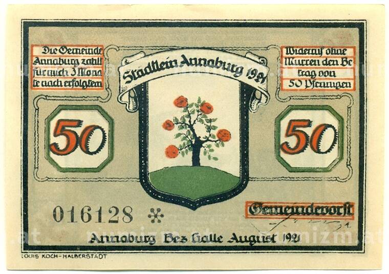 Купить 50 пфеннигов 1921 года Германия — Аннабург (Нотгельд) по привлекательной цене можно в нашем интернет-магазине — Вам достаточно оформить заказ на сайте. Все монеты, представленные в каталоге, находятся в наличии на нашем складе.