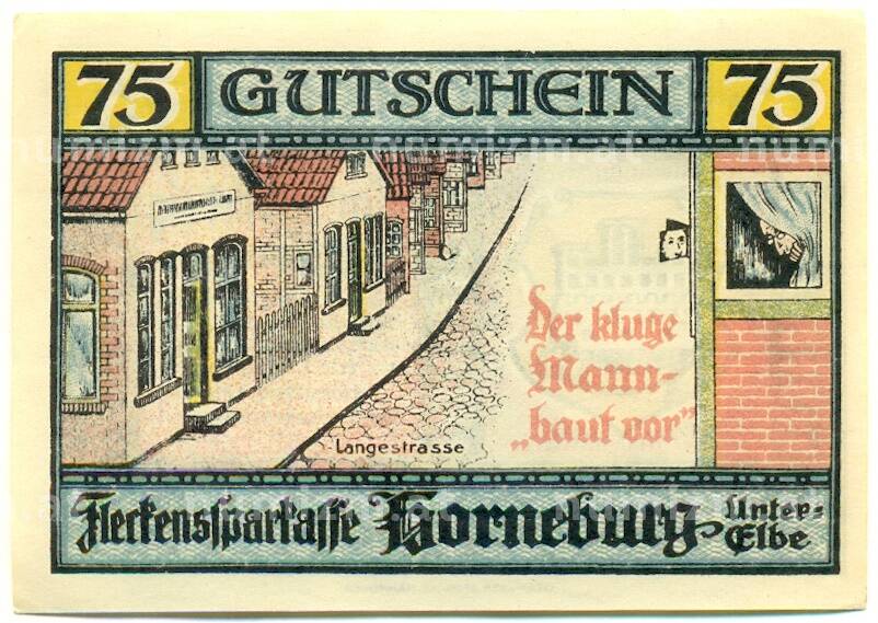Купить 75 пфеннигов 1921 года Германия — Хорнебург (Нотгельд) по привлекательной цене можно в нашем интернет-магазине — Вам достаточно оформить заказ на сайте. Все монеты, представленные в каталоге, находятся в наличии на нашем складе.