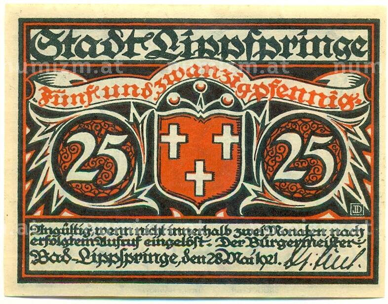 Купить 25 пфеннигов 1921 года Германия — Бад-Липпшпринге (Нотгельд) по привлекательной цене можно в нашем интернет-магазине — Вам достаточно оформить заказ на сайте. Все монеты, представленные в каталоге, находятся в наличии на нашем складе.