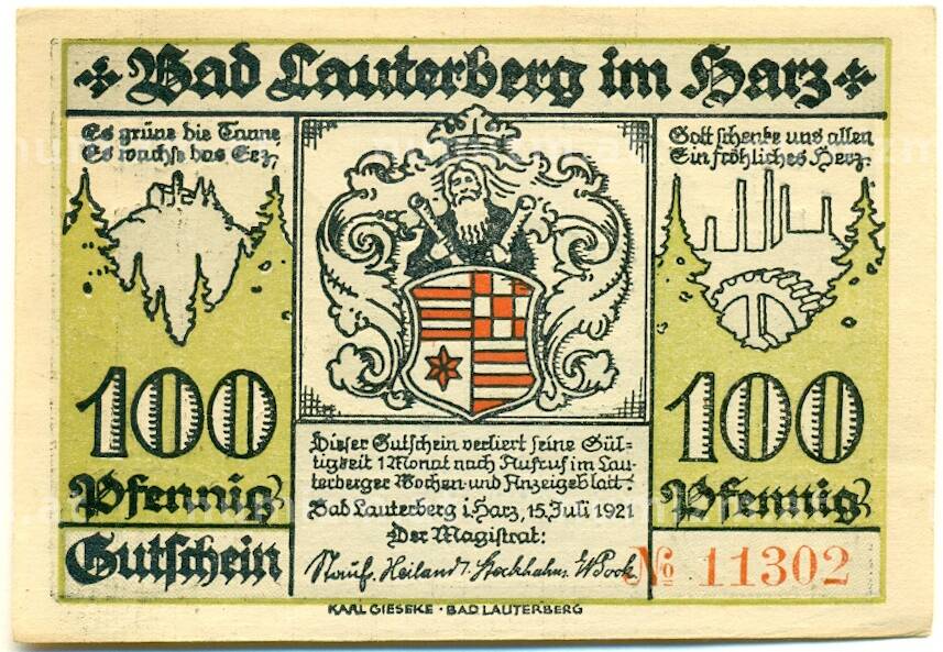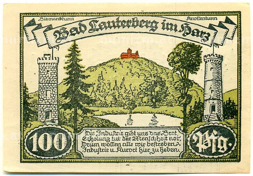 Купить 100 пфеннигов 1921 года Германия — Бад-Лаутерберг-им-Гарц (Нотгельд) по привлекательной цене можно в нашем интернет-магазине — Вам достаточно оформить заказ на сайте. Все монеты, представленные в каталоге, находятся в наличии на нашем складе.