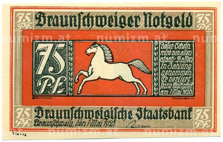 Купить 75 пфеннигов 1921 года Германия — Брауншвейг (Нотгельд) по привлекательной цене можно в нашем интернет-магазине — Вам достаточно оформить заказ на сайте. Все монеты, представленные в каталоге, находятся в наличии на нашем складе.