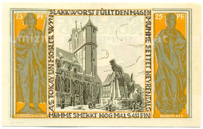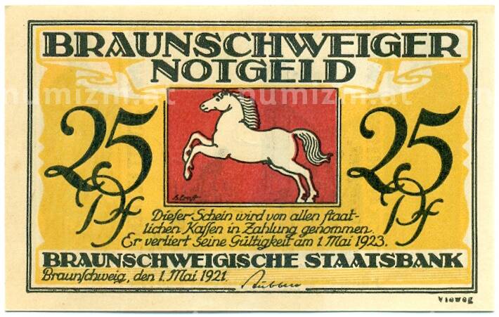 Банкнота 25 пфеннигов 1921 года Германия — Брауншвейг (Нотгельд) (Артикул: K10-12778): подробные характеристики, качественные фотографии в высоком разрешении, низкая цена.