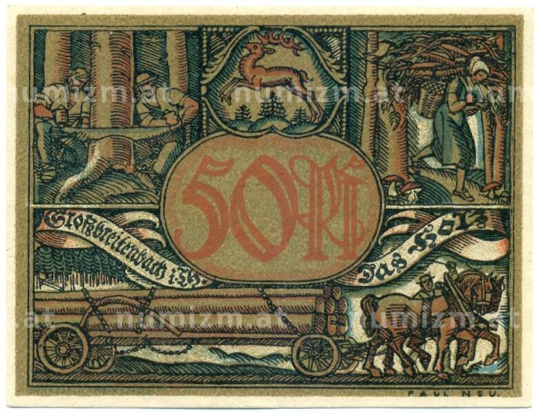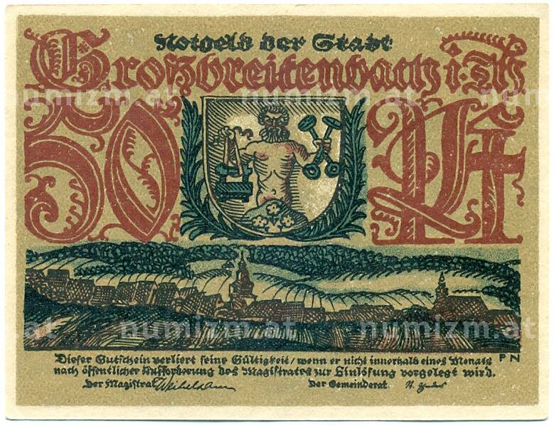 Банкнота 50 пфеннигов 1921 года Германия — Гросбрайтенбах (Нотгельд) (Артикул: K10-12795): подробные характеристики, качественные фотографии в высоком разрешении, низкая цена.