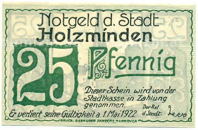 Купить 25 пфеннигов 1922 года Германия — Хольцминден (Нотгельд) по привлекательной цене можно в нашем интернет-магазине — Вам достаточно оформить заказ на сайте. Все монеты, представленные в каталоге, находятся в наличии на нашем складе.