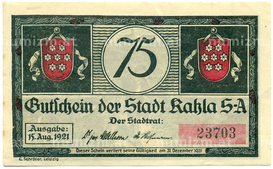 Купить 75 пфеннигов 1921 года Германия — Кала (Нотгельд) по привлекательной цене можно в нашем интернет-магазине — Вам достаточно оформить заказ на сайте. Все монеты, представленные в каталоге, находятся в наличии на нашем складе.