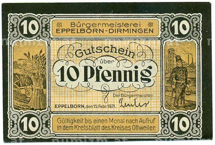 Купить 10 пфеннигов 1921 года Германия — Эппельборн-Дирминген (Нотгельд) по привлекательной цене можно в нашем интернет-магазине — Вам достаточно оформить заказ на сайте. Все монеты, представленные в каталоге, находятся в наличии на нашем складе.
