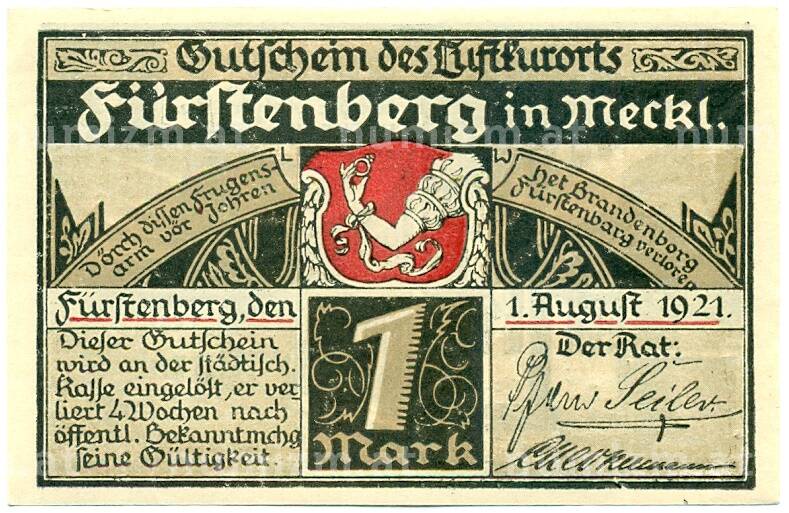 Купить 1 марка 1921 года Германия — Фюрстенберг (Нотгельд) по привлекательной цене можно в нашем интернет-магазине — Вам достаточно оформить заказ на сайте. Все монеты, представленные в каталоге, находятся в наличии на нашем складе.