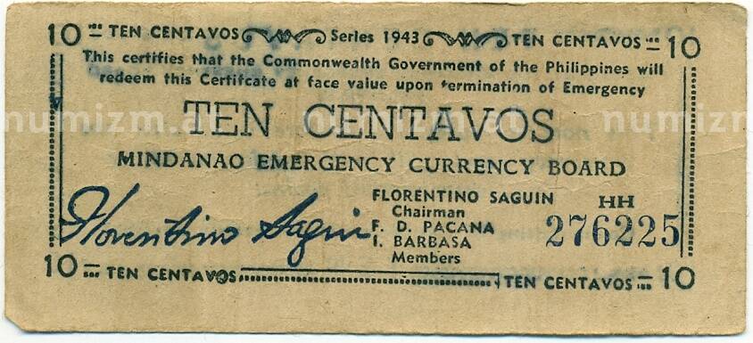 Купить 10 сентаво 1943 года Филиппины — провинция Минданао по привлекательной цене можно в нашем интернет-магазине — Вам достаточно оформить заказ на сайте. Все монеты, представленные в каталоге, находятся в наличии на нашем складе.