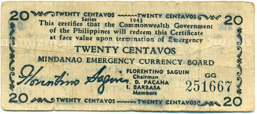 Купить 20 сентаво 1943 года Филиппины — провинция Минданао по привлекательной цене можно в нашем интернет-магазине — Вам достаточно оформить заказ на сайте. Все монеты, представленные в каталоге, находятся в наличии на нашем складе.