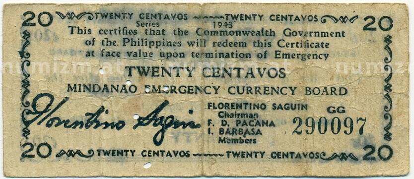 Купить 20 сентаво 1943 года Филиппины — провинция Минданао по привлекательной цене можно в нашем интернет-магазине — Вам достаточно оформить заказ на сайте. Все монеты, представленные в каталоге, находятся в наличии на нашем складе.