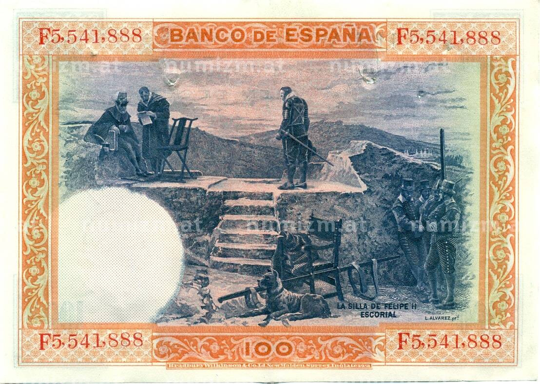 Банкнота 100 песет 1925 года Испания (Гашение) (Артикул: K10-12930): подробные характеристики, качественные фотографии в высоком разрешении, низкая цена.