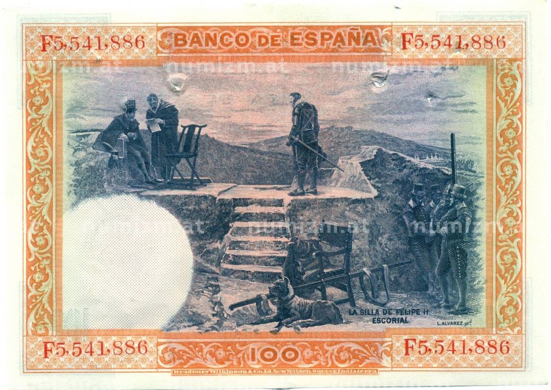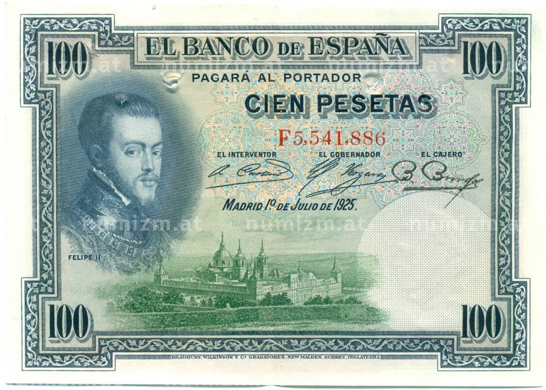 Банкнота 100 песет 1925 года Испания (Гашение) (Артикул: K10-12932): подробные характеристики, качественные фотографии в высоком разрешении, низкая цена.