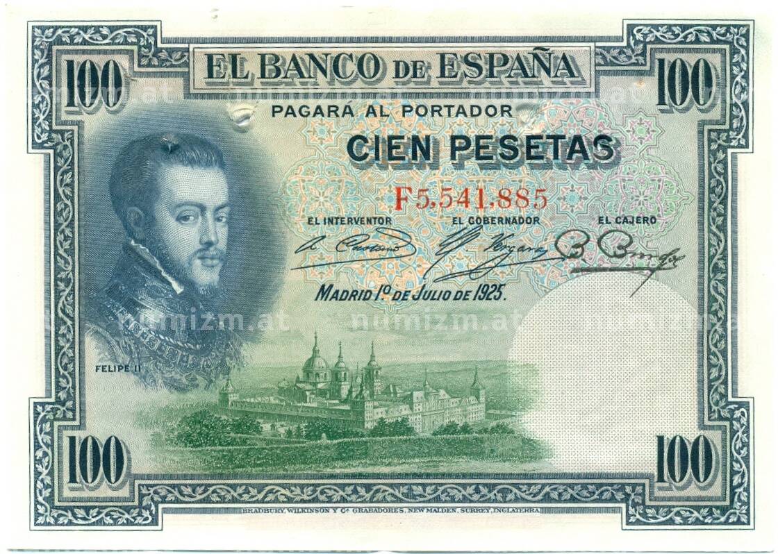 Банкнота 100 песет 1925 года Испания (Гашение) (Артикул: K10-12933): подробные характеристики, качественные фотографии в высоком разрешении, низкая цена.