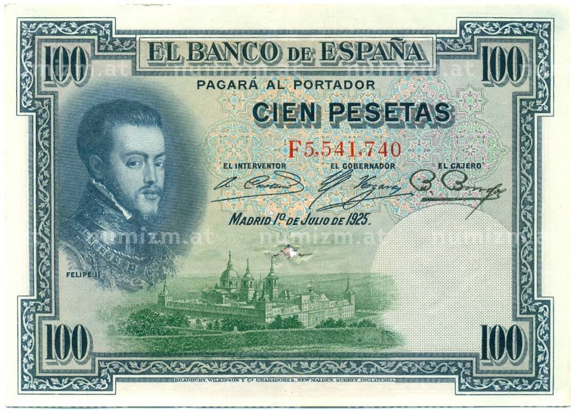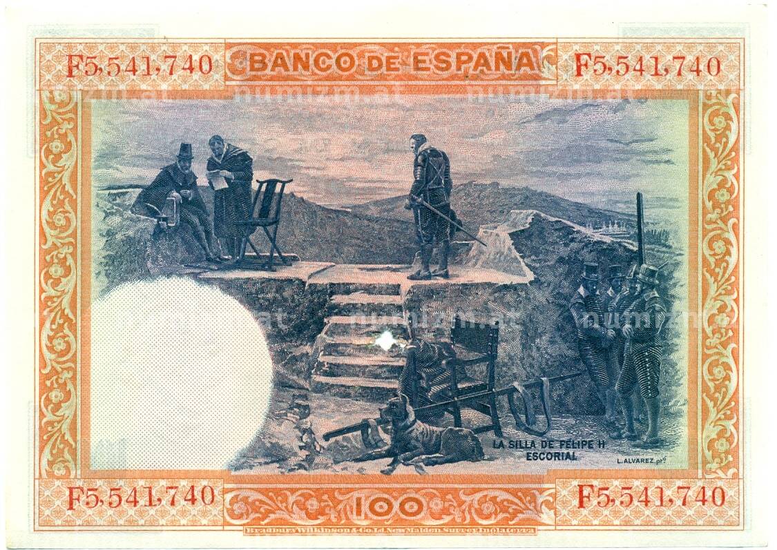 Банкнота 100 песет 1925 года Испания (Гашение) (Артикул: K10-12935): подробные характеристики, качественные фотографии в высоком разрешении, низкая цена.