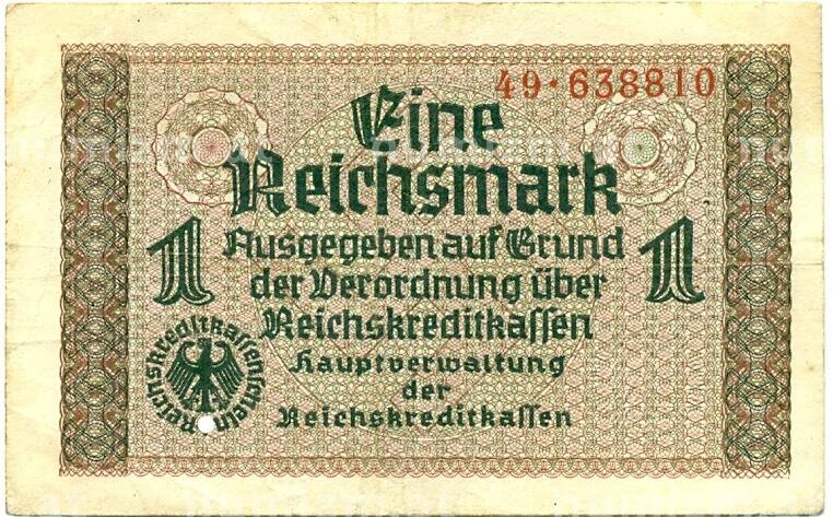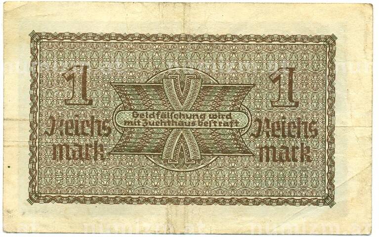 Банкнота 1 рейхсмарка 1939 года Германия (Для оккупированных территорий) (Артикул: K10-12941): подробные характеристики, качественные фотографии в высоком разрешении, низкая цена.