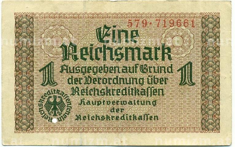 Банкнота 1 рейхсмарка 1939 года Германия (Для оккупированных территорий) (Артикул: K10-12943): подробные характеристики, качественные фотографии в высоком разрешении, низкая цена.
