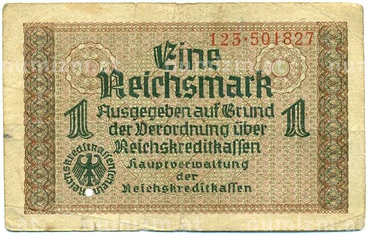Банкнота 1 рейхсмарка 1939 года Германия (Для оккупированных территорий) (Артикул: K10-12954): подробные характеристики, качественные фотографии в высоком разрешении, низкая цена.