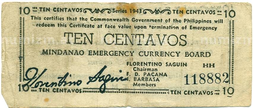 Купить 10 сентаво 1943 года Филиппины — провинция Минданао по привлекательной цене можно в нашем интернет-магазине — Вам достаточно оформить заказ на сайте. Все монеты, представленные в каталоге, находятся в наличии на нашем складе.