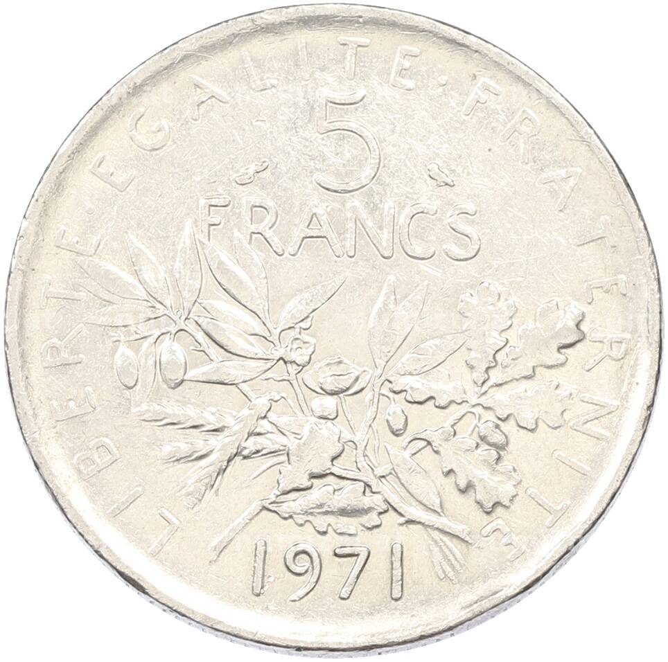 Монета 5 франков 1971 года Франция (Артикул: K10-12980): подробные характеристики, качественные фотографии в высоком разрешении, низкая цена.