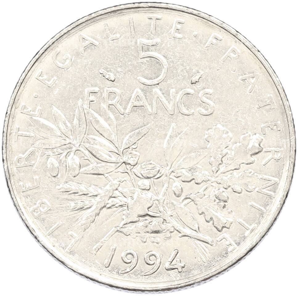 Купить 5 франков 1994 года Франция по привлекательной цене можно в нашем интернет-магазине — Вам достаточно оформить заказ на сайте. Все монеты, представленные в каталоге, находятся в наличии на нашем складе.