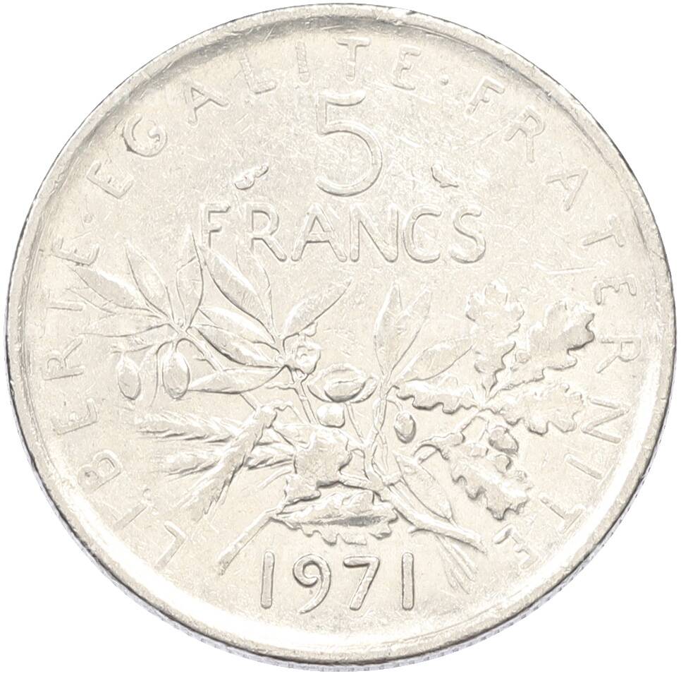 Монета 5 франков 1971 года Франция (Артикул: K10-12987): подробные характеристики, качественные фотографии в высоком разрешении, низкая цена.