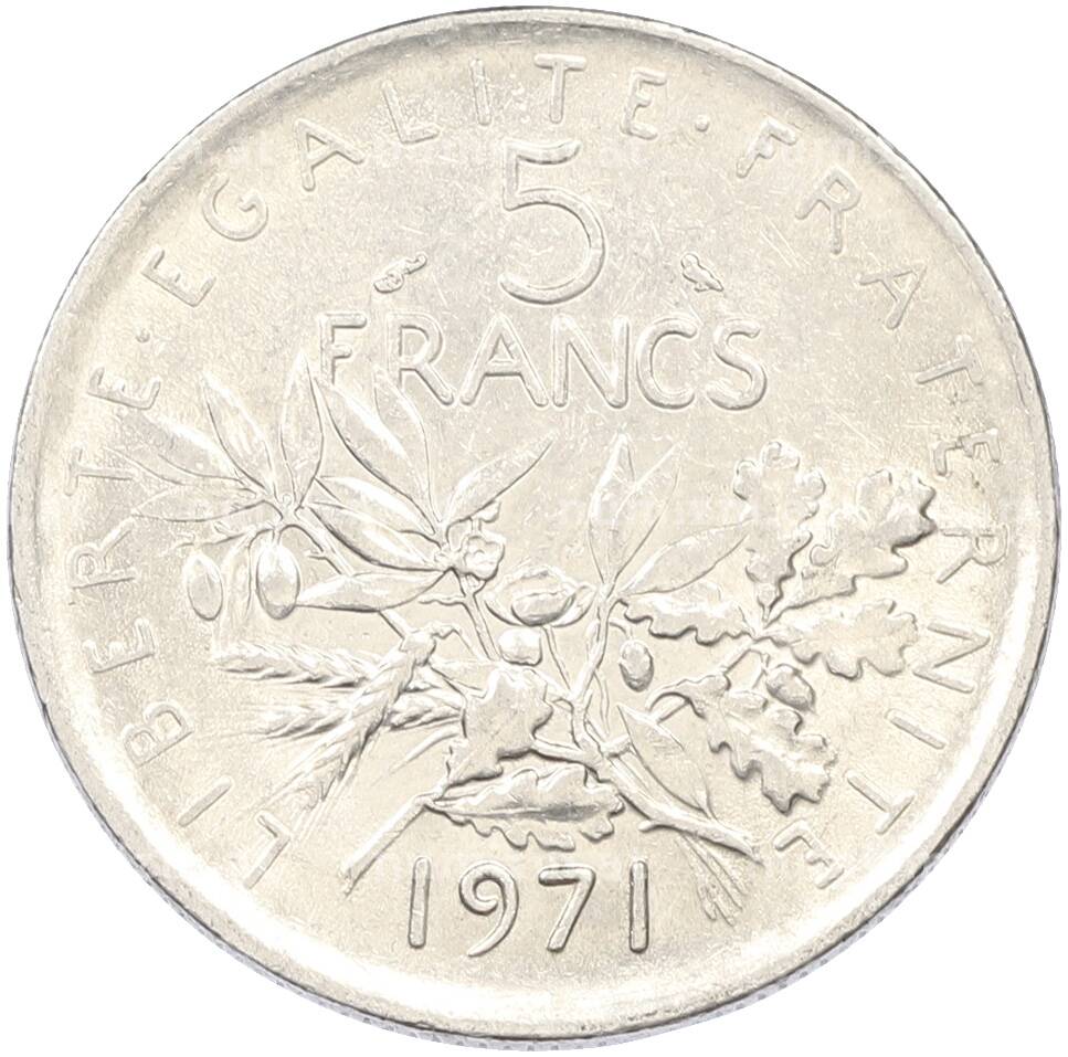 Монета 5 франков 1971 года Франция (Артикул: K10-12989): подробные характеристики, качественные фотографии в высоком разрешении, низкая цена.