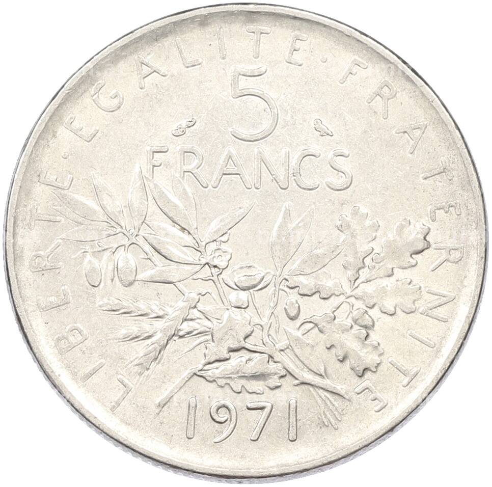 Монета 5 франков 1971 года Франция (Артикул: K10-12992): подробные характеристики, качественные фотографии в высоком разрешении, низкая цена.