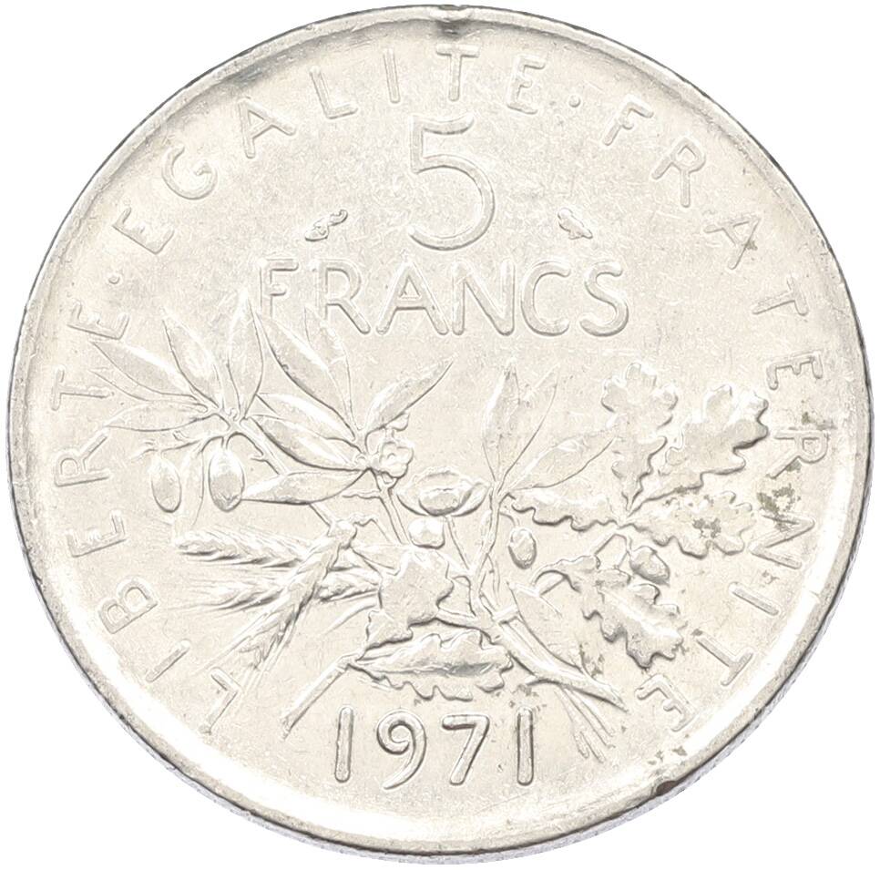Монета 5 франков 1971 года Франция (Артикул: K10-12994): подробные характеристики, качественные фотографии в высоком разрешении, низкая цена.