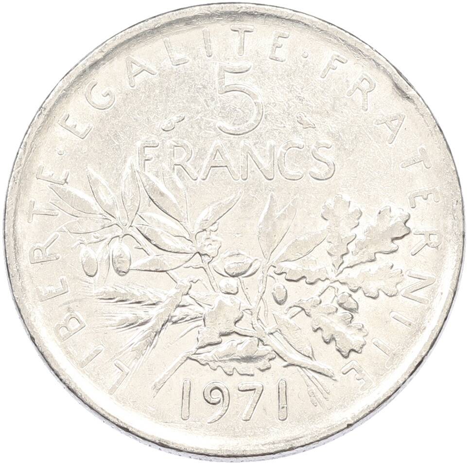 Монета 5 франков 1971 года Франция (Артикул: K10-13007): подробные характеристики, качественные фотографии в высоком разрешении, низкая цена.