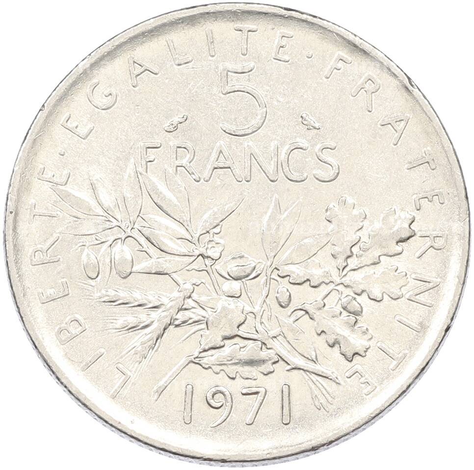 Монета 5 франков 1971 года Франция (Артикул: K10-13010): подробные характеристики, качественные фотографии в высоком разрешении, низкая цена.