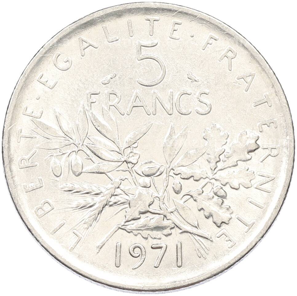 Монета 5 франков 1971 года Франция (Артикул: K10-13011): подробные характеристики, качественные фотографии в высоком разрешении, низкая цена.