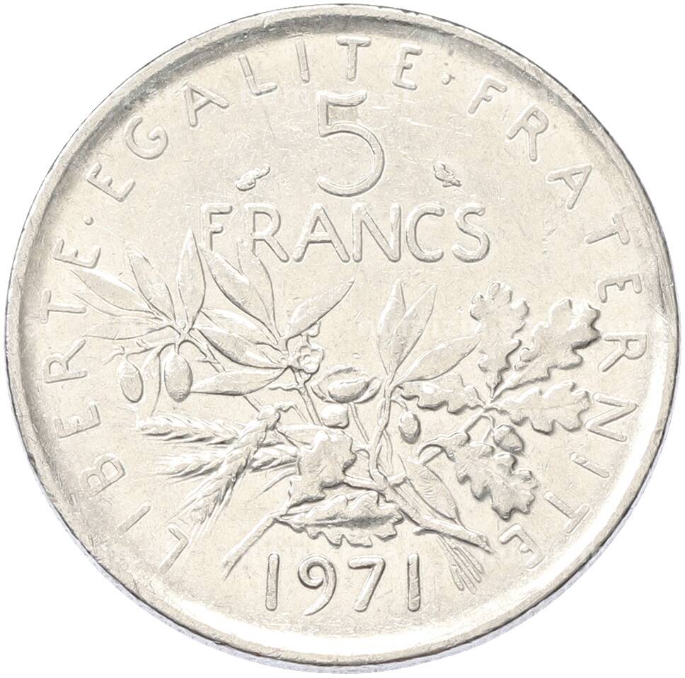 Монета 5 франков 1971 года Франция (Артикул: K10-13039): подробные характеристики, качественные фотографии в высоком разрешении, низкая цена.