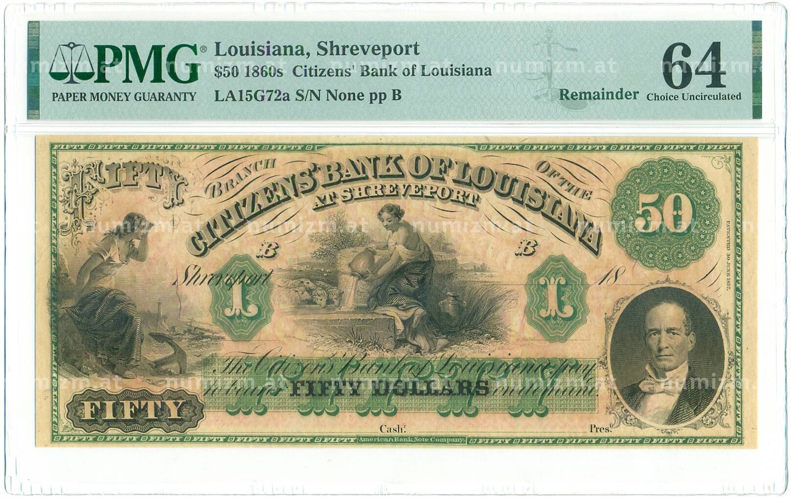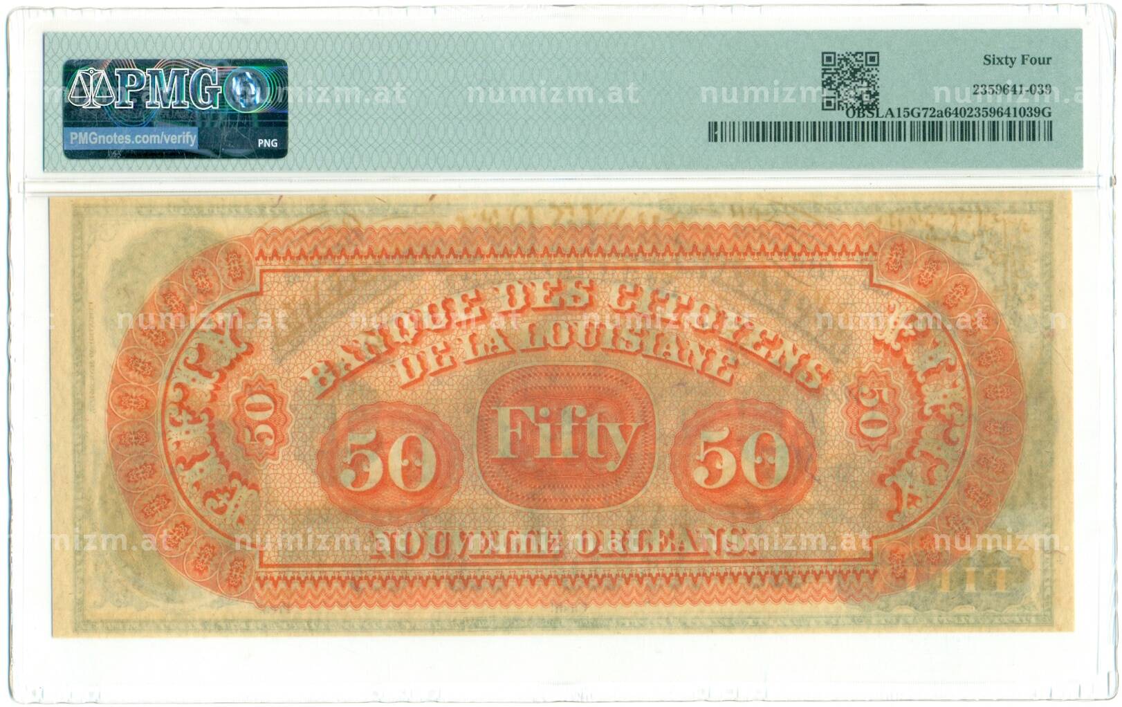 Купить 50 долларов 1860-1869 года США (Гражданский банк Луизианы) — в слабе PMG (Choice UNC 64) по привлекательной цене можно в нашем интернет-магазине — Вам достаточно оформить заказ на сайте. Все монеты, представленные в каталоге, находятся в наличии на нашем складе.