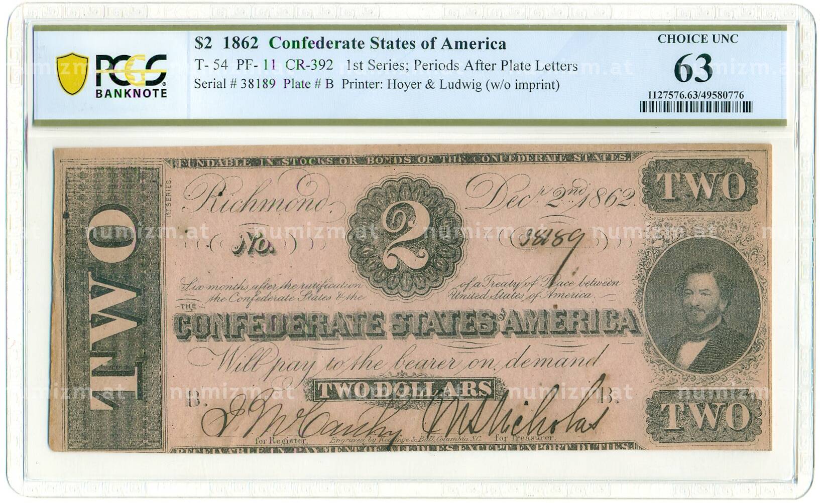 Купить 2 доллара 1862 года Конфедеративные Штаты Америки — в слабе PCGS (Choice UNC 63) по привлекательной цене можно в нашем интернет-магазине — Вам достаточно оформить заказ на сайте. Все монеты, представленные в каталоге, находятся в наличии на нашем складе.